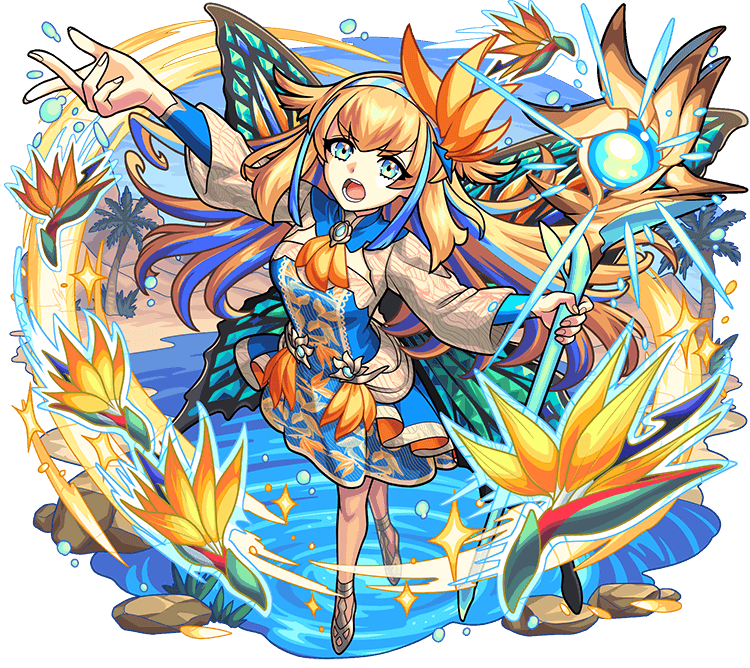 王国へ侵攻する侵略者と対峙するストレリチア。 得意の召喚術を使って鳥のような風貌のストレリチアの花を呼び寄せる。彼女が命じると、それに従い、花々は本物の鳥さながらに華麗に舞いながら、敵勢へ急襲を仕掛ける。 他国のために一生懸命に戦うストレリチアの姿は、サバリス王国の民の目にまばゆく、そして美しく映るのだった。