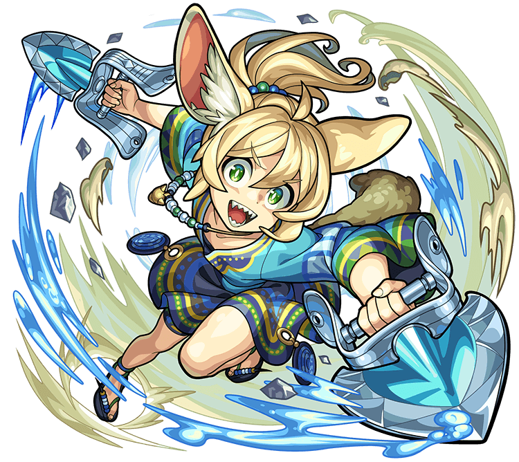サバドラの命令でサバリス王国の周囲に穴を掘って罠を作っていたところを花の妖精に見つかり、戦闘モードに入るフェネディ。 特殊形状の短剣の先端をスコップに改造した特製の武器を両手に構えて、俊敏な動きで敵に飛びかかる。 サバドラの夢を邪魔する者は許さないとばかりに襲い来るその表情は好戦的で、花の妖精たちとの戦いを楽しんでいるようにも見えるのだった。