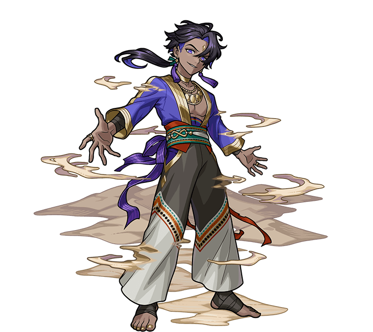 サバリス王国の豊かな大地を我が物にしようと目論む「砂葬結社デザストーム」のリーダー。 砂こそが至高の存在であるという思想を持ち、緑地を根絶やしにして世界のすべてを砂で覆い尽くすために活動している。 砂を自在に操る能力と、あらゆる物と自身の体を砂に変える能力を持ち、世界征服計画の手始めに近隣にあるサバリス王国の侵略を企む。