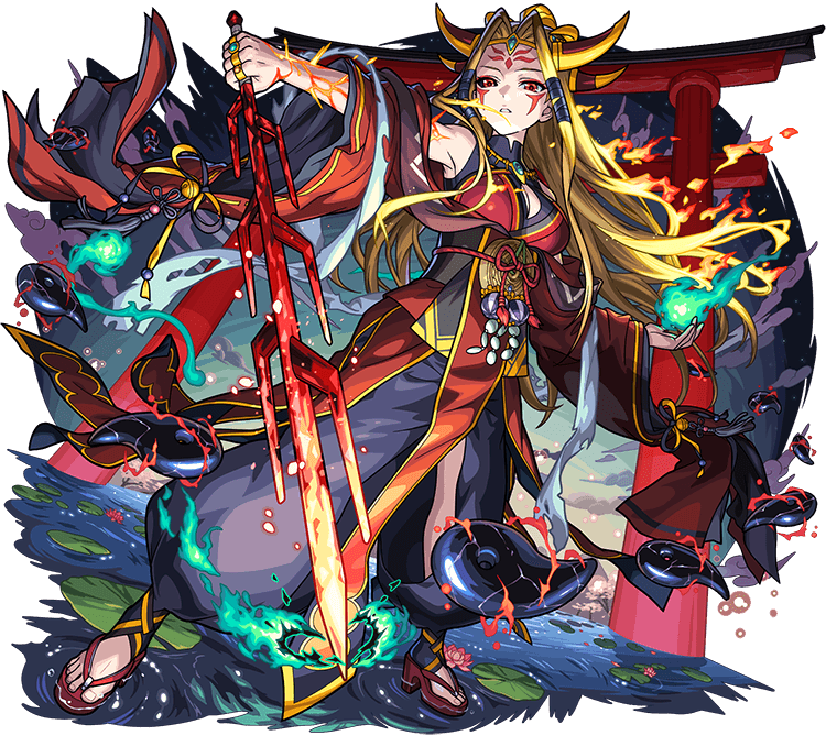 黄泉の国を支配する黄泉津大神として君臨するイザナミ。七支刀を振るい、黄泉の国へやってくる神々の魂を無慈悲にも次々に消していく。 それは、命を落とし黄泉の国へやってきたことで最愛のイザナギと永遠に離別することになった自分と同じ想いをする者をこれ以上出さないために、という使命感からの行いだった。 こうしてイザナミは、いつか来るであろうイザナギの魂を己の手で消すその時まで、黄泉の国の入口に佇み、神々の魂を抹消し続けるのだった。