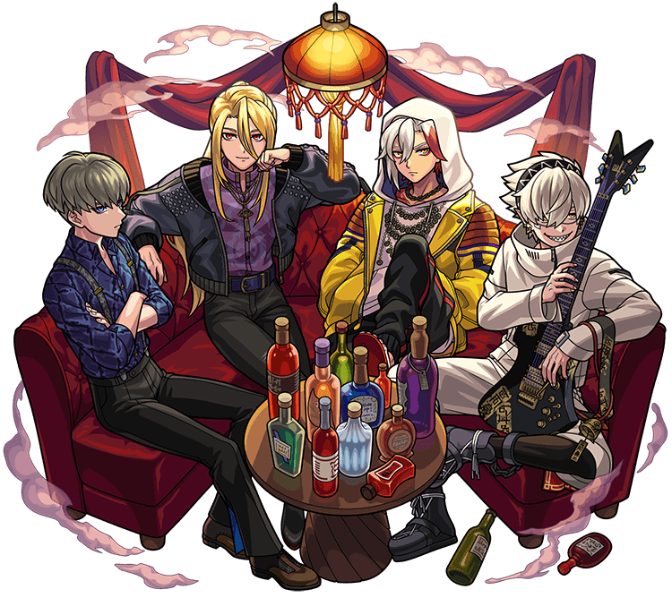 音楽によって世界に安寧をもたらすために結成された、バサラ(Vo.)、コクウ(Ba.)、阿鼻(Gt.)、キリンジ(Dr.)の四人から成るロックバンド。 働きもせずに釣りばかりしながら放浪していたところをキリンジにスカウトされたバサラ、ビジュアル系バンド『幽世(ゴースト)』の元ベーシスト兼リーダーであり幼馴染のバサラと性格の相性がすこぶる悪いというコクウ、呪いのギター『スクリーム』をかき鳴らして地獄を騒がせた罪によって監獄に囚われていた阿鼻、そして曲者揃いのメンバーを持ち前の知略でまとめ上げ、ときに手の上で転がすリーダー兼プロデューサーのキリンジという危うさに満ちたチームだが、キリンジいわく「このメンバーでなくては俺の理想は達成できない」とのこと。 各々の活動をバックグラウンドとした独自のミクスチャー・ロックを音楽性とする彼らのサウンドは一度聴いたら抜け出せない中毒性があり、彼らの魅力から離れられなくなったファンが続出している。